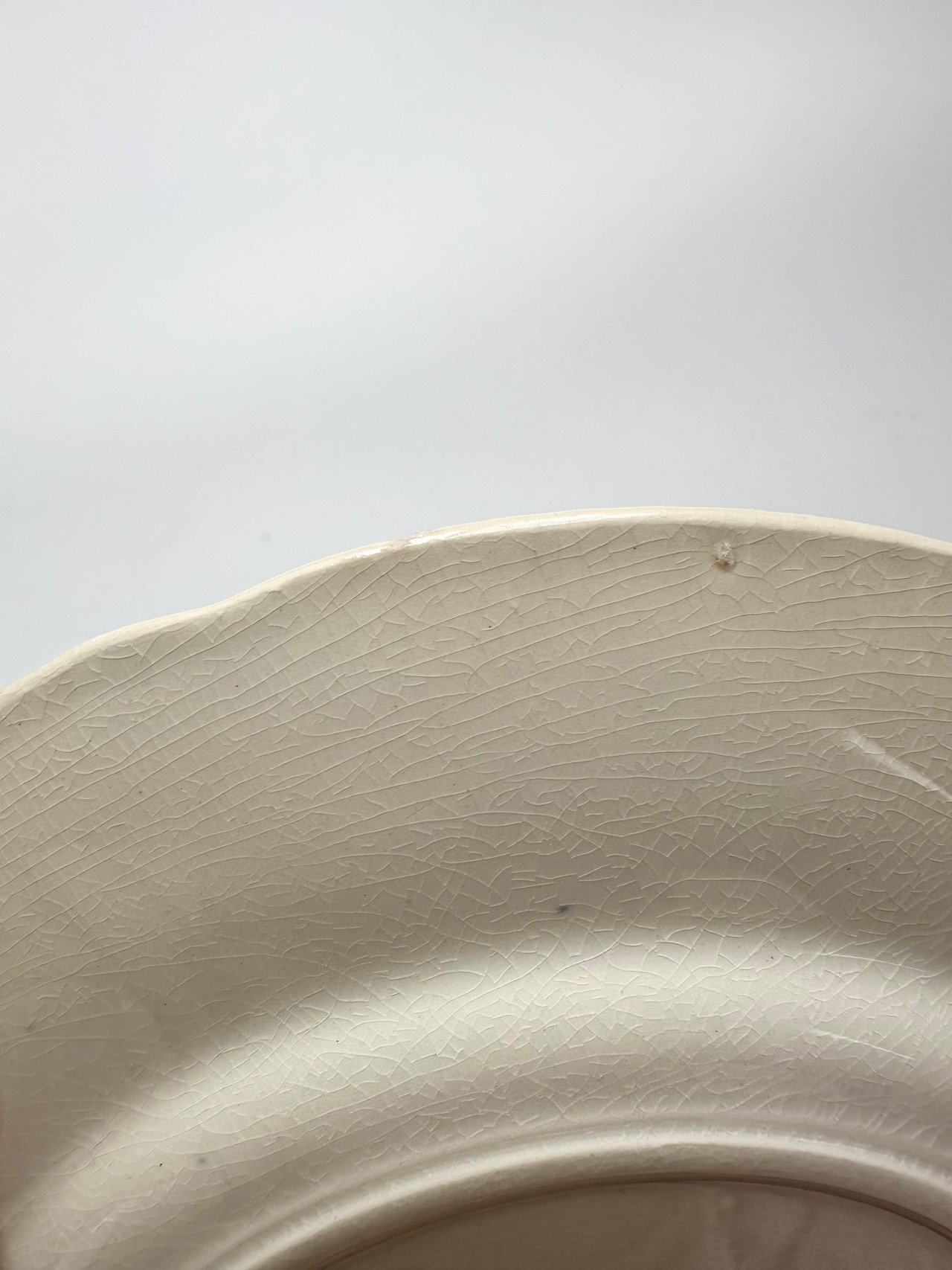 貫入、カトラリー傷、窯傷、スレ、小さな傷、裏に制作中の支柱跡、シミ、色ムラ、色飛びございます。