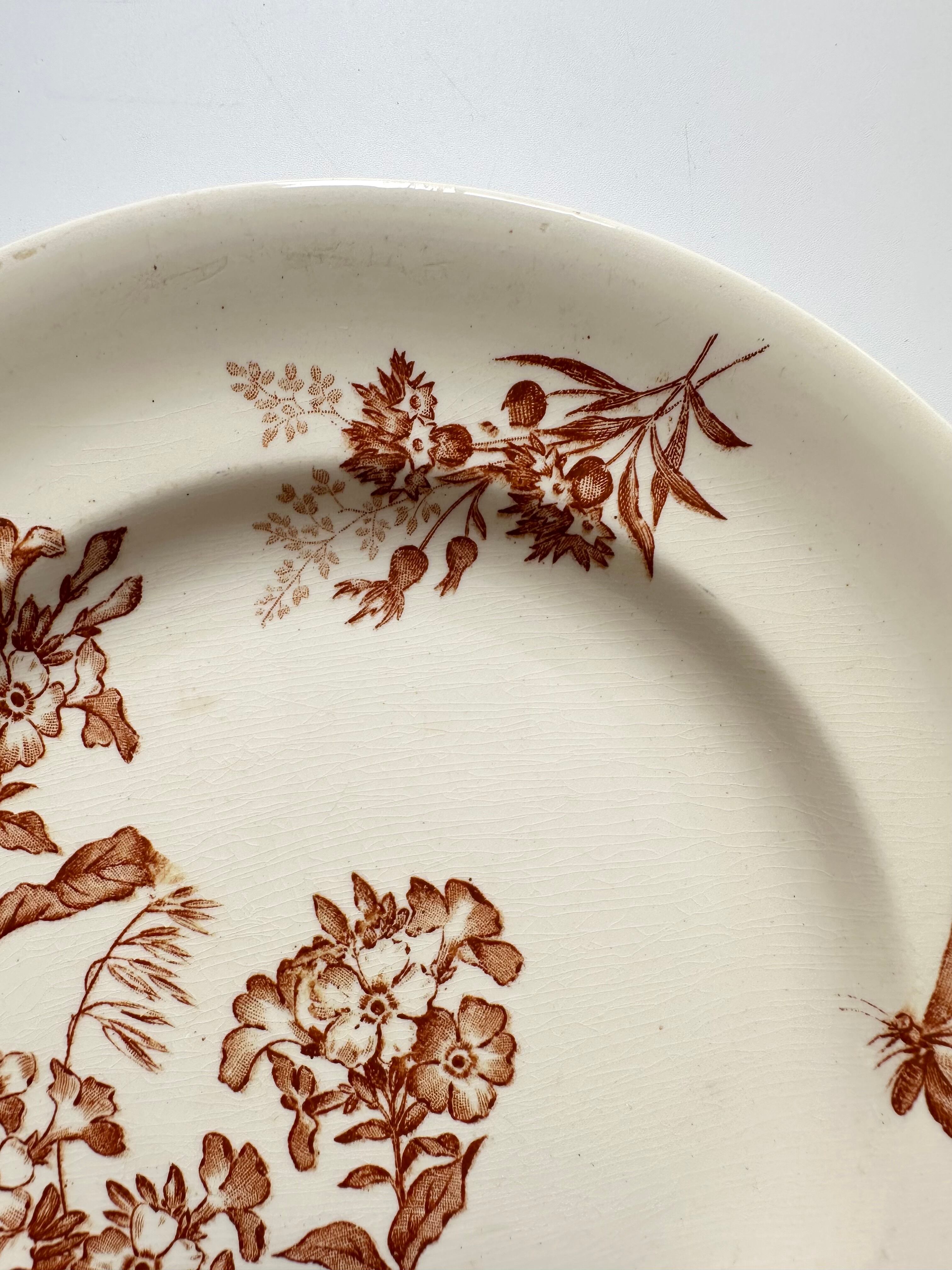 LONGWY ロンウィー ボタニカルなブラウンプレート BOTANIQUE フランス アンティーク 皿 平皿
