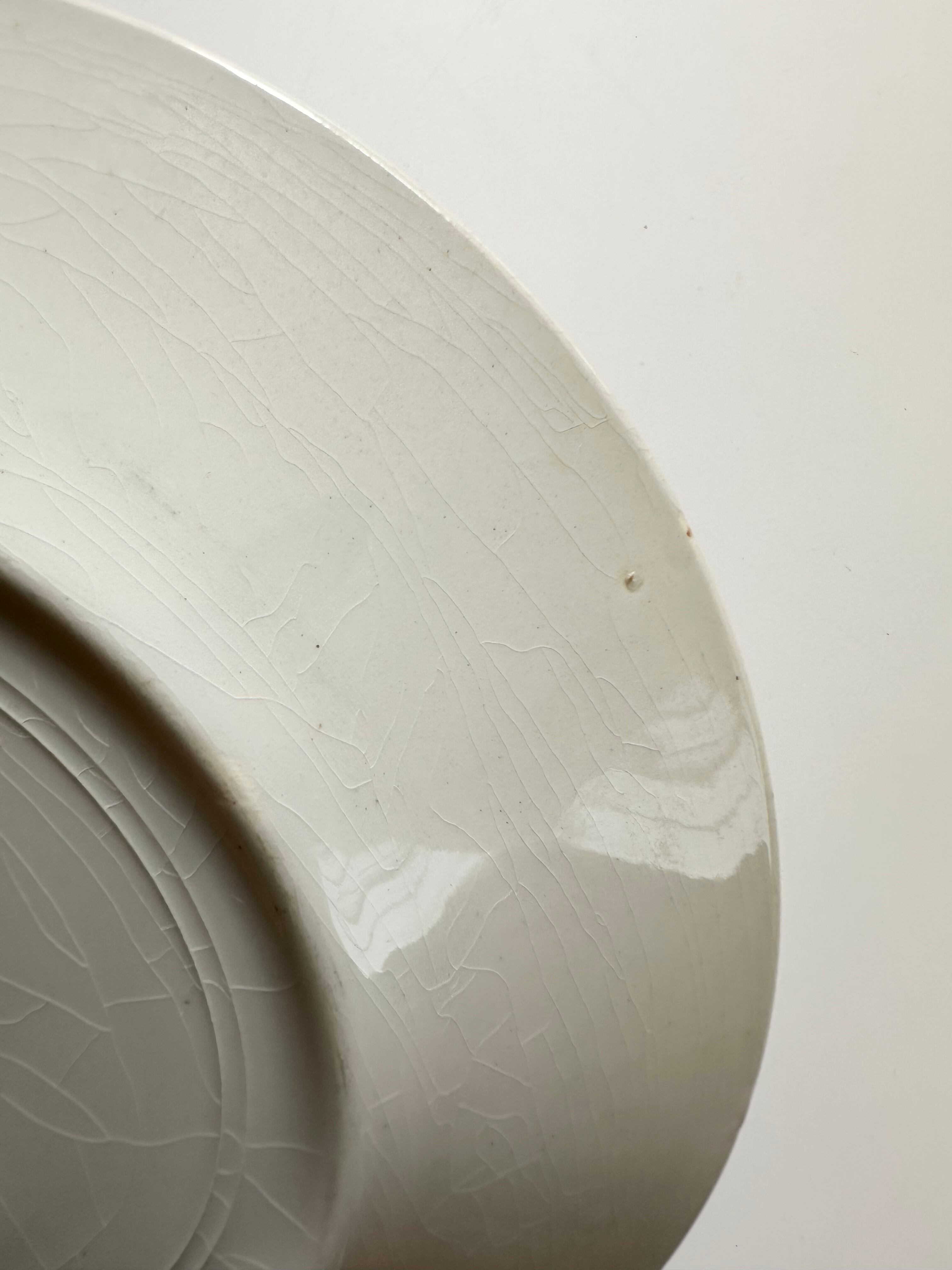 貫入、カトラリー傷、窯傷、スレ、小さな傷、裏に制作中の支柱跡、シミ、色ムラ、色飛びございます。