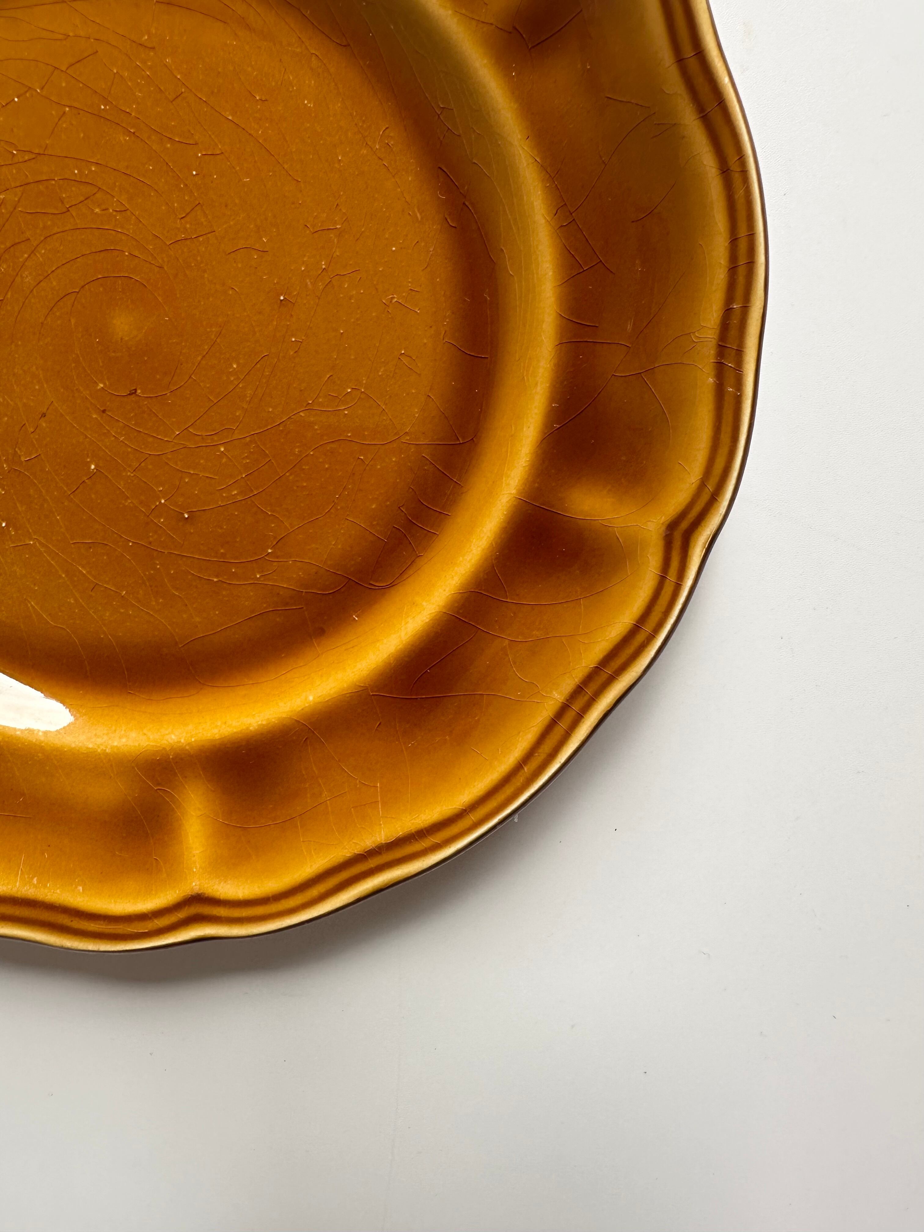 luneville ブラウンの花リムプレート ブロカント フランス アンティーク 皿