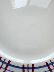 貫入、カトラリー傷、窯傷、スレ、縁に小さな傷、裏に制作中の支柱跡、シミ、色ムラ、色飛びございます。