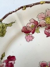 ピンクの可愛らしいお花の周りには、りんごの木をイメージしたようなブラウンがリムを囲っています。