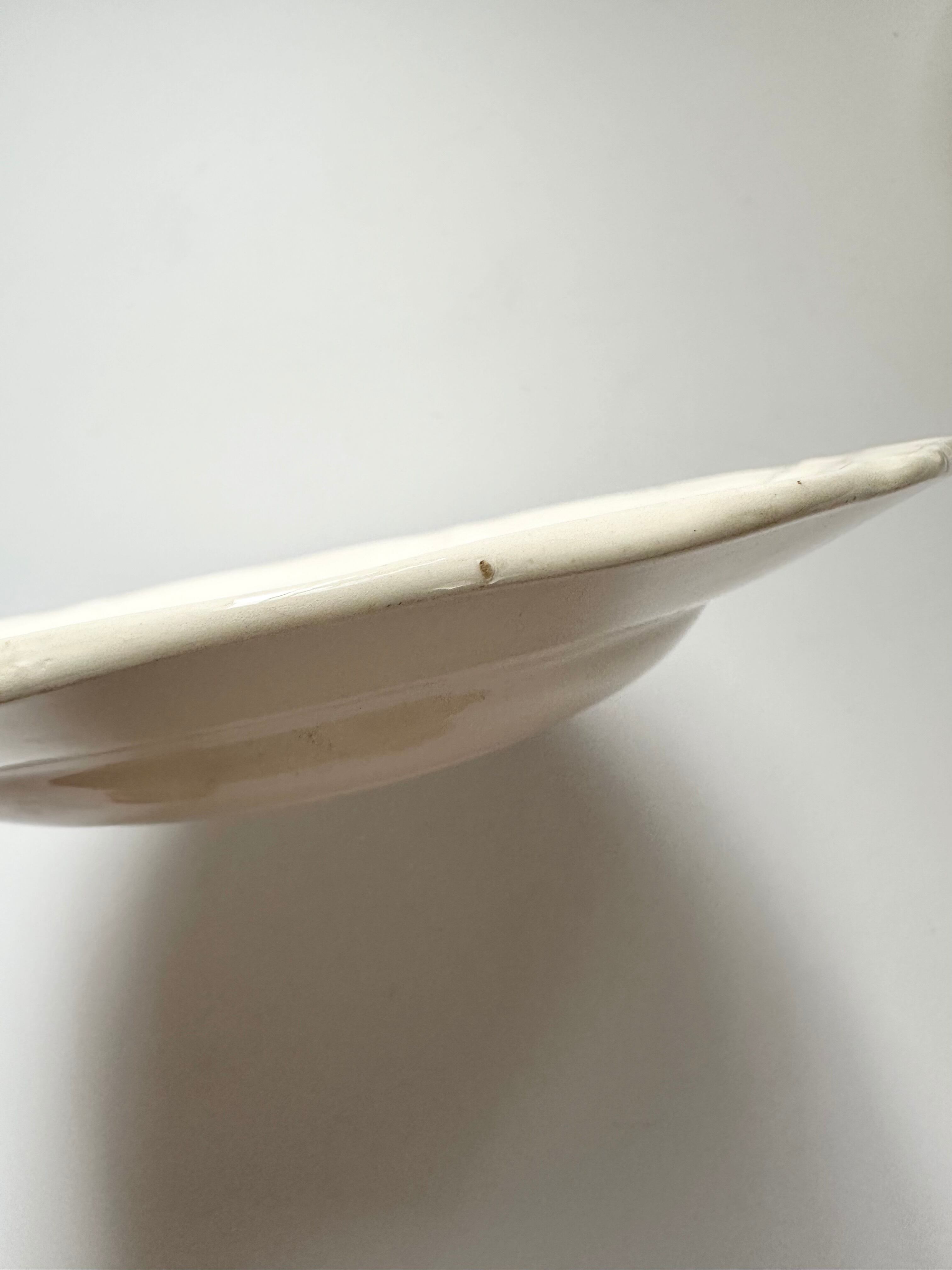 多少のカトラリー傷、窯傷、スレ、凹凸、作成中に生じた亀裂(上から釉薬が掛けられています)裏に制作中の支柱跡がございます。