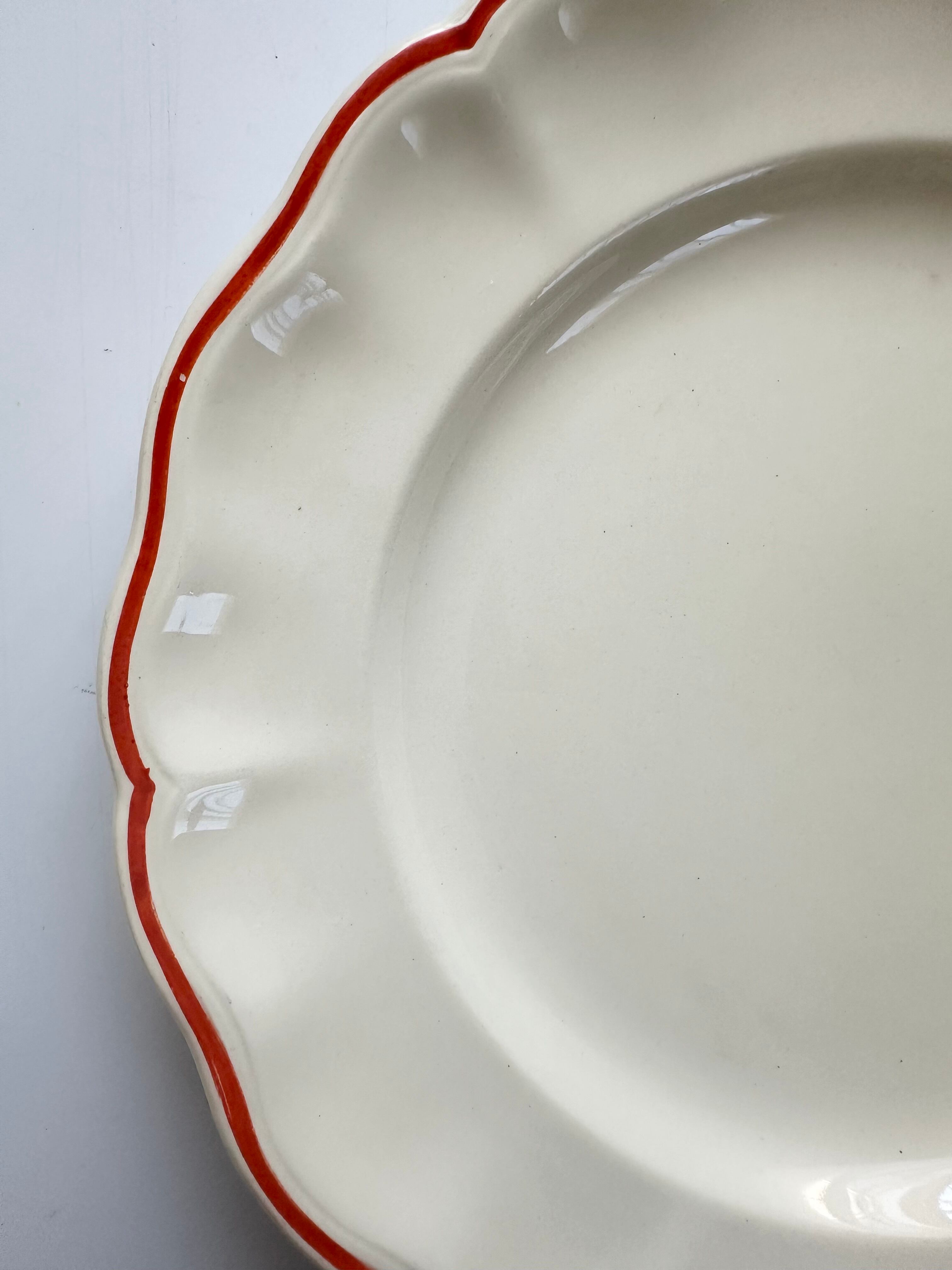Luneville リュネヴィル オレンジラインの花リムプレート フランス アンティーク 平皿