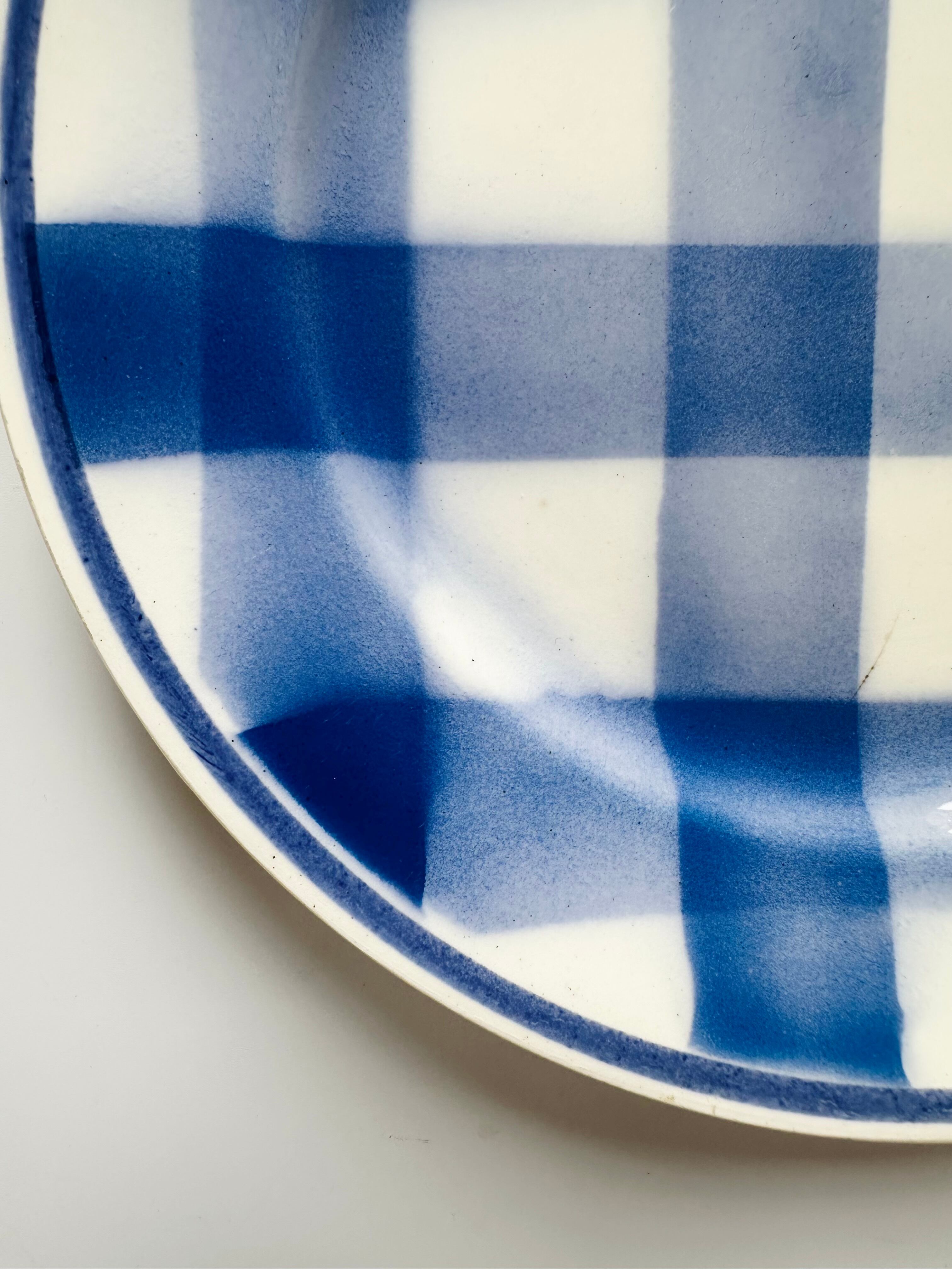 Givors ジボール窯 青のチェックプレート デザート皿 平皿