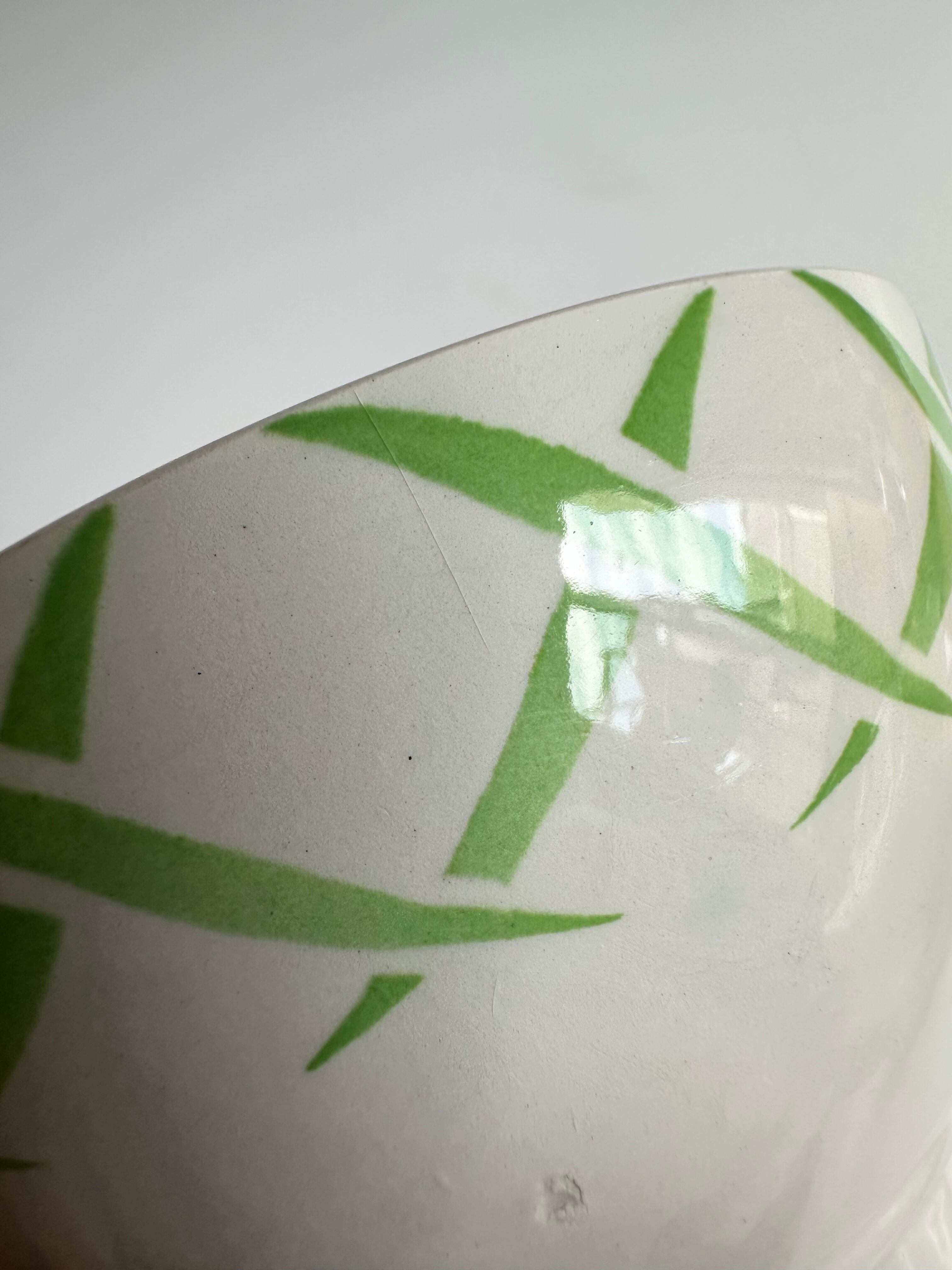 薄く表面にヘアラインがありますが、爪で触っても感じない程度のものです。カトラリー傷、窯傷、スレ、小さな傷、裏に制作中の支柱跡、多少のシミ、ございます。