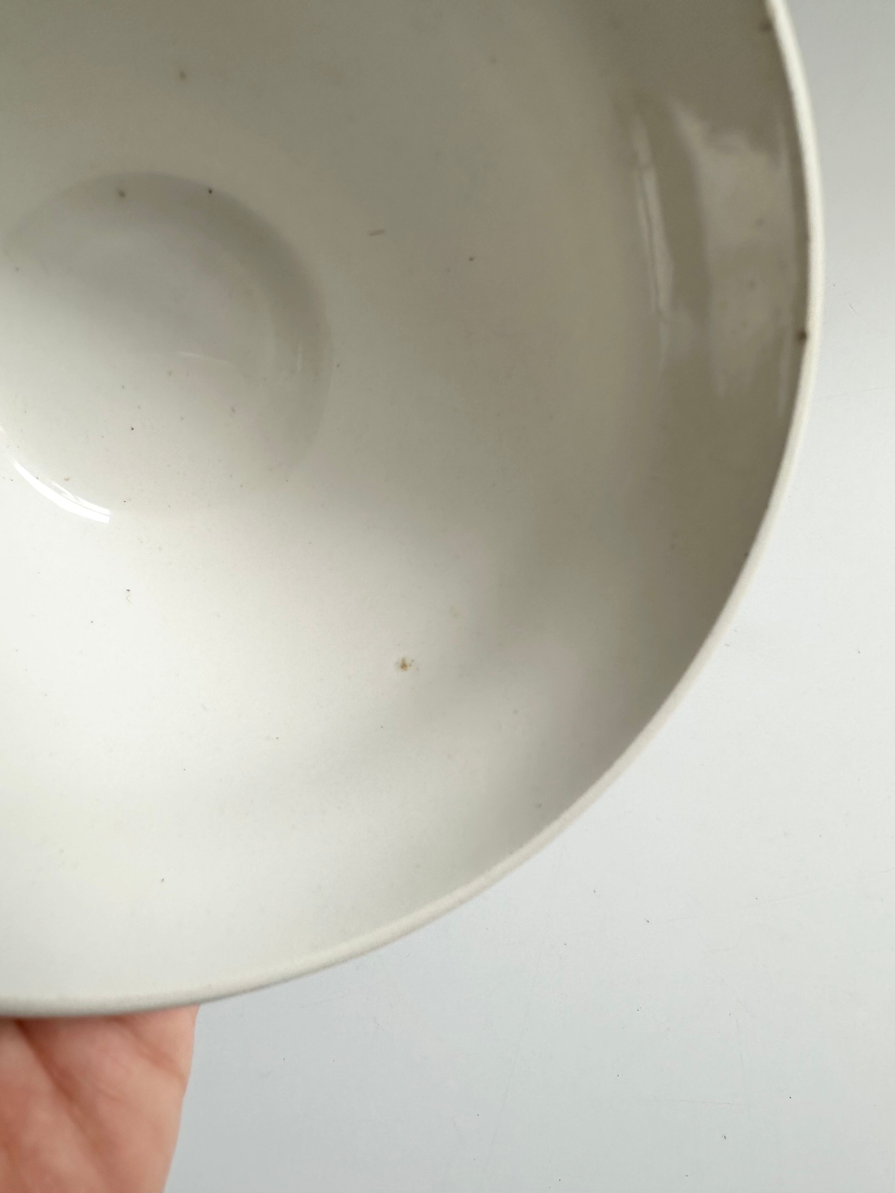縁に小さなチップがあります。カトラリー傷、窯傷、スレ、小さな傷、裏に制作中の支柱跡、多少のシミ、ございます。