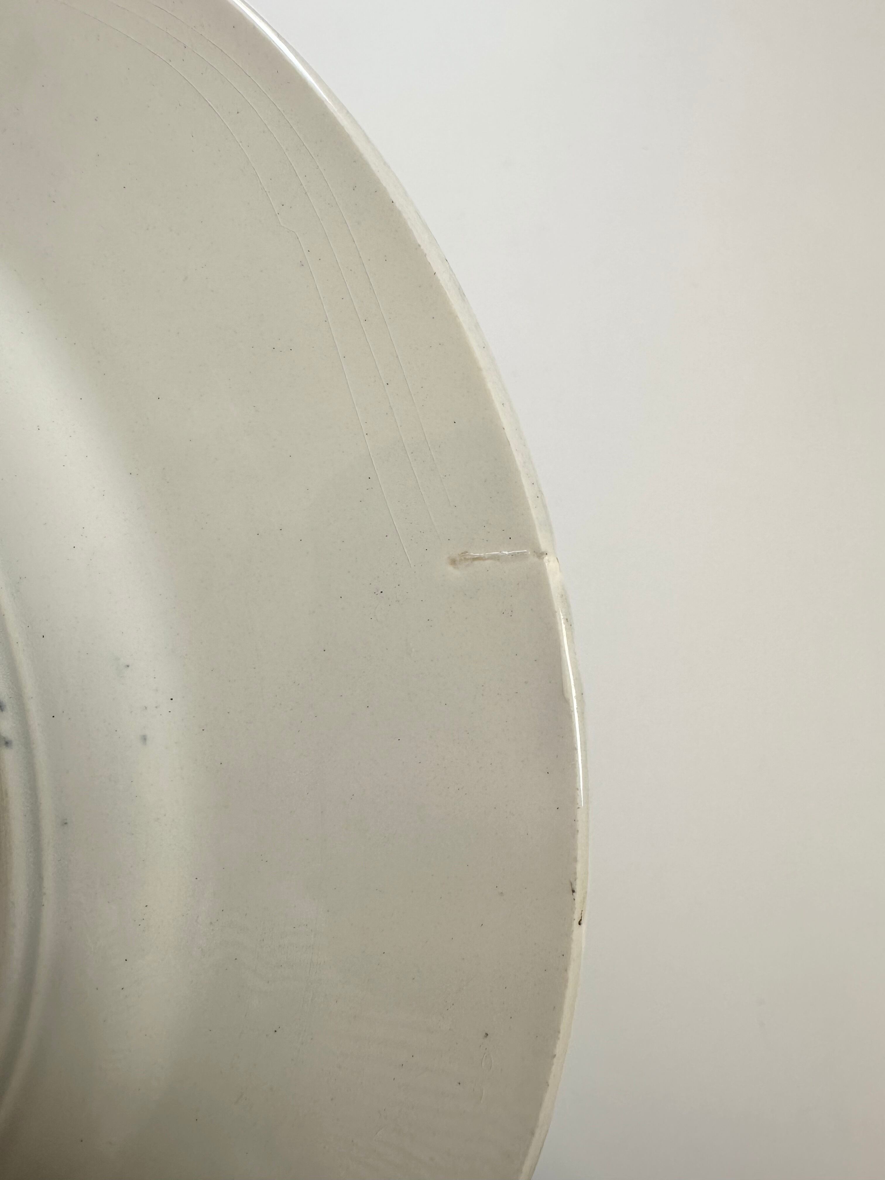貫入、カトラリー傷、窯傷、スレ、小さな傷、裏に制作中の支柱跡、シミ、色ムラ、色飛びございます。