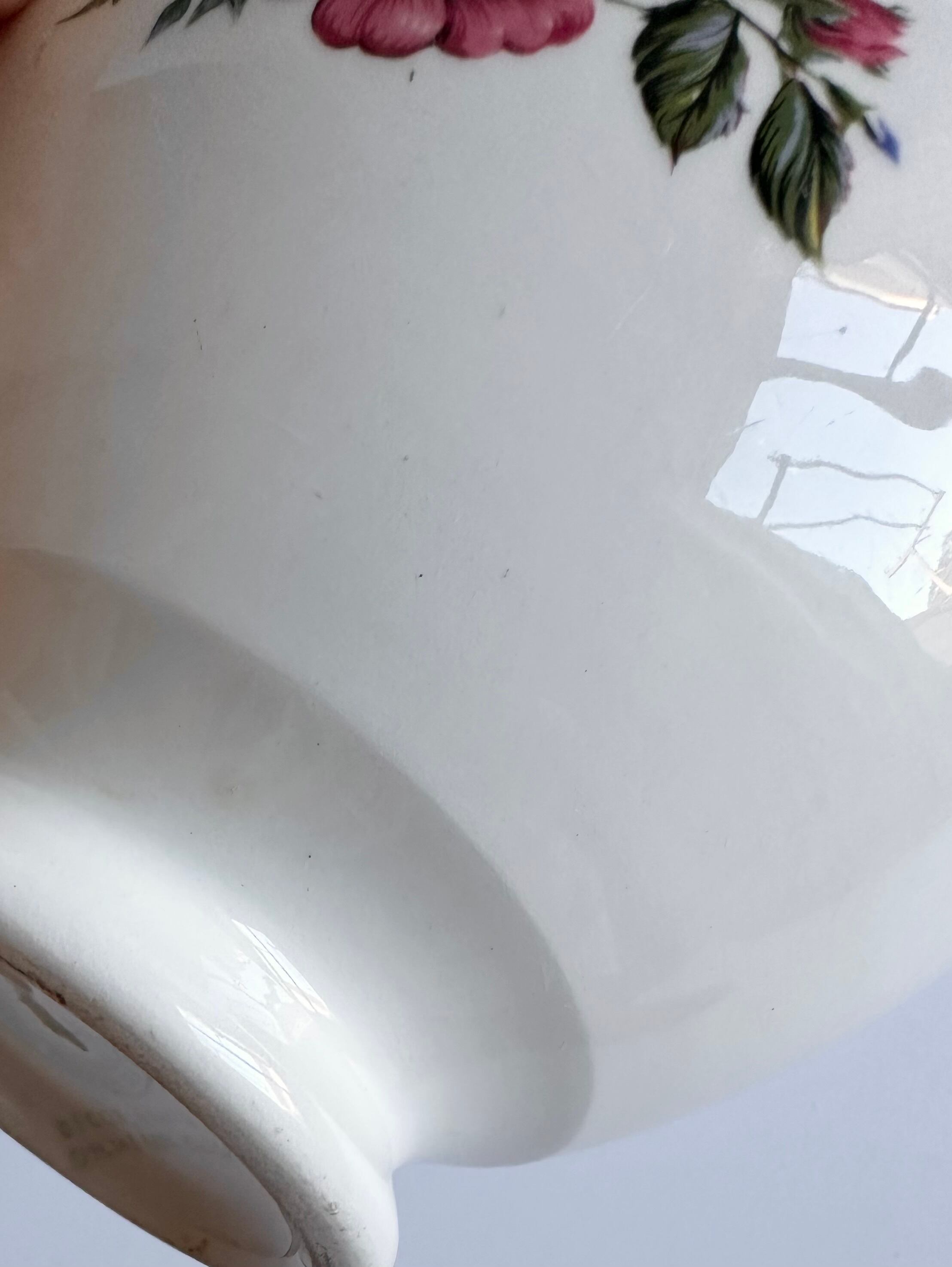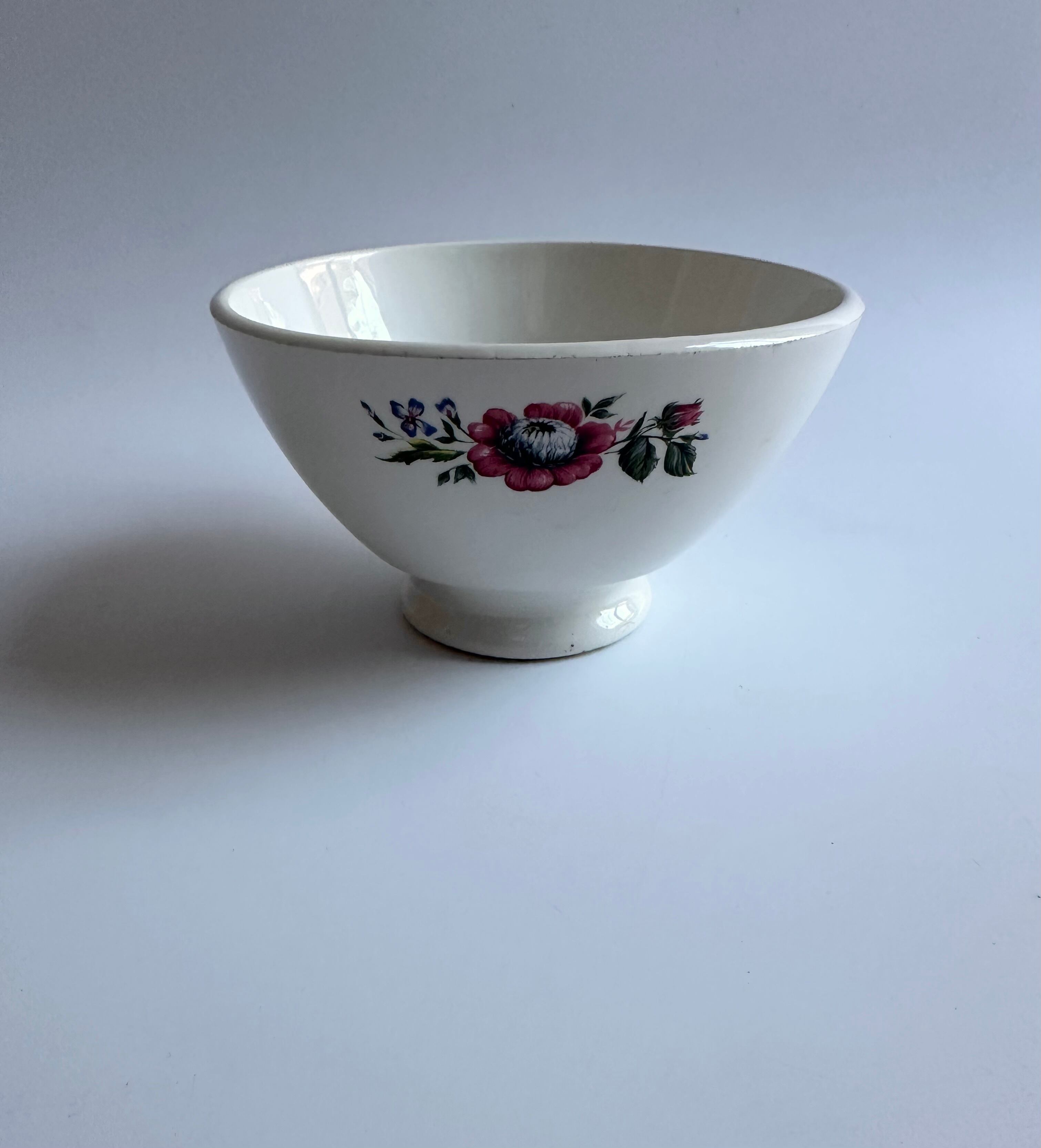 ぽってりとした白の器に華やかなお花が描かれています。手に持っていると、とても温かみを感じる、まるっとした器です。