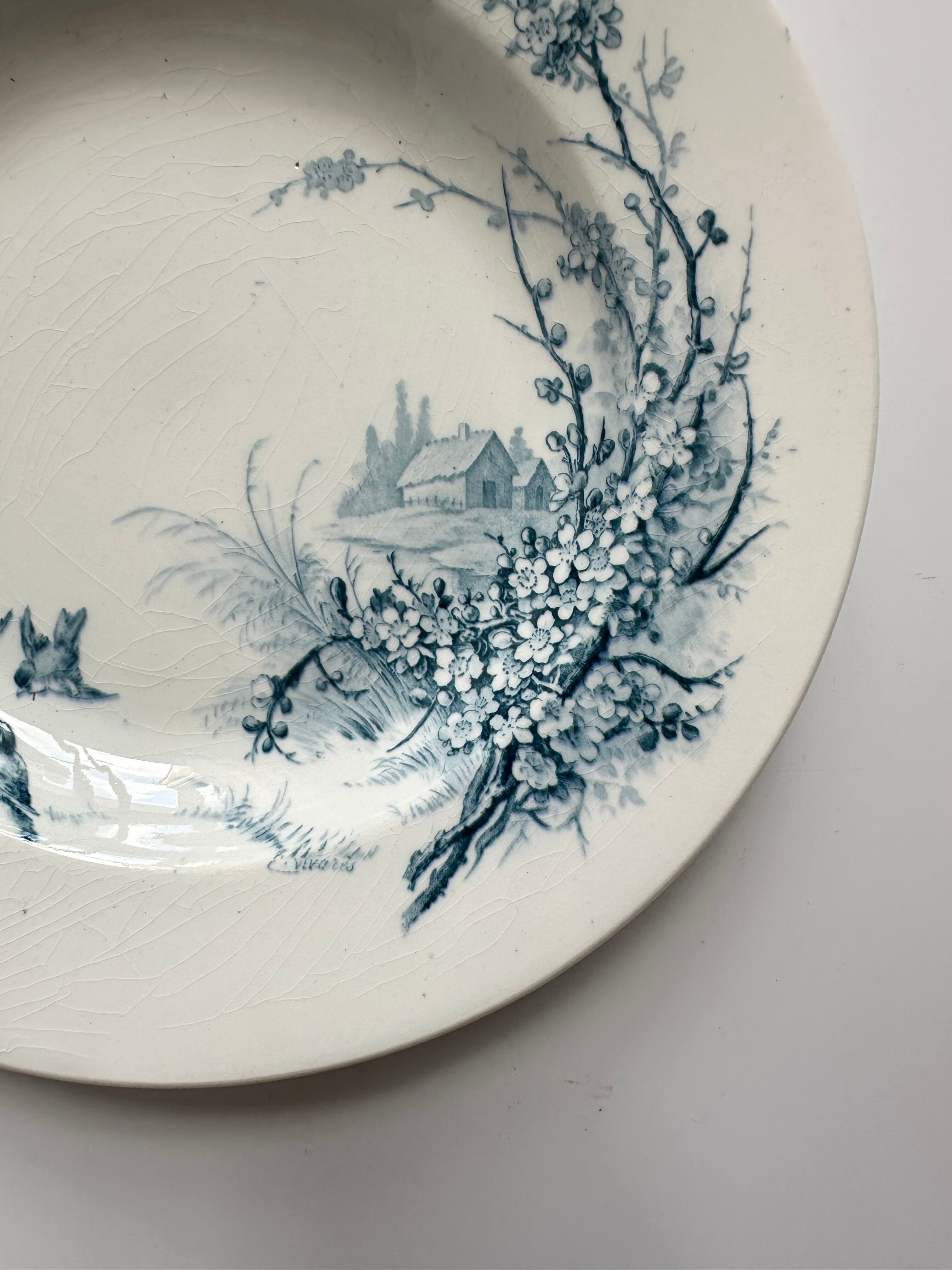 GIEN PAYSAGES フランス アンティーク プレート 皿 ビンテージ ブロカント 鳥