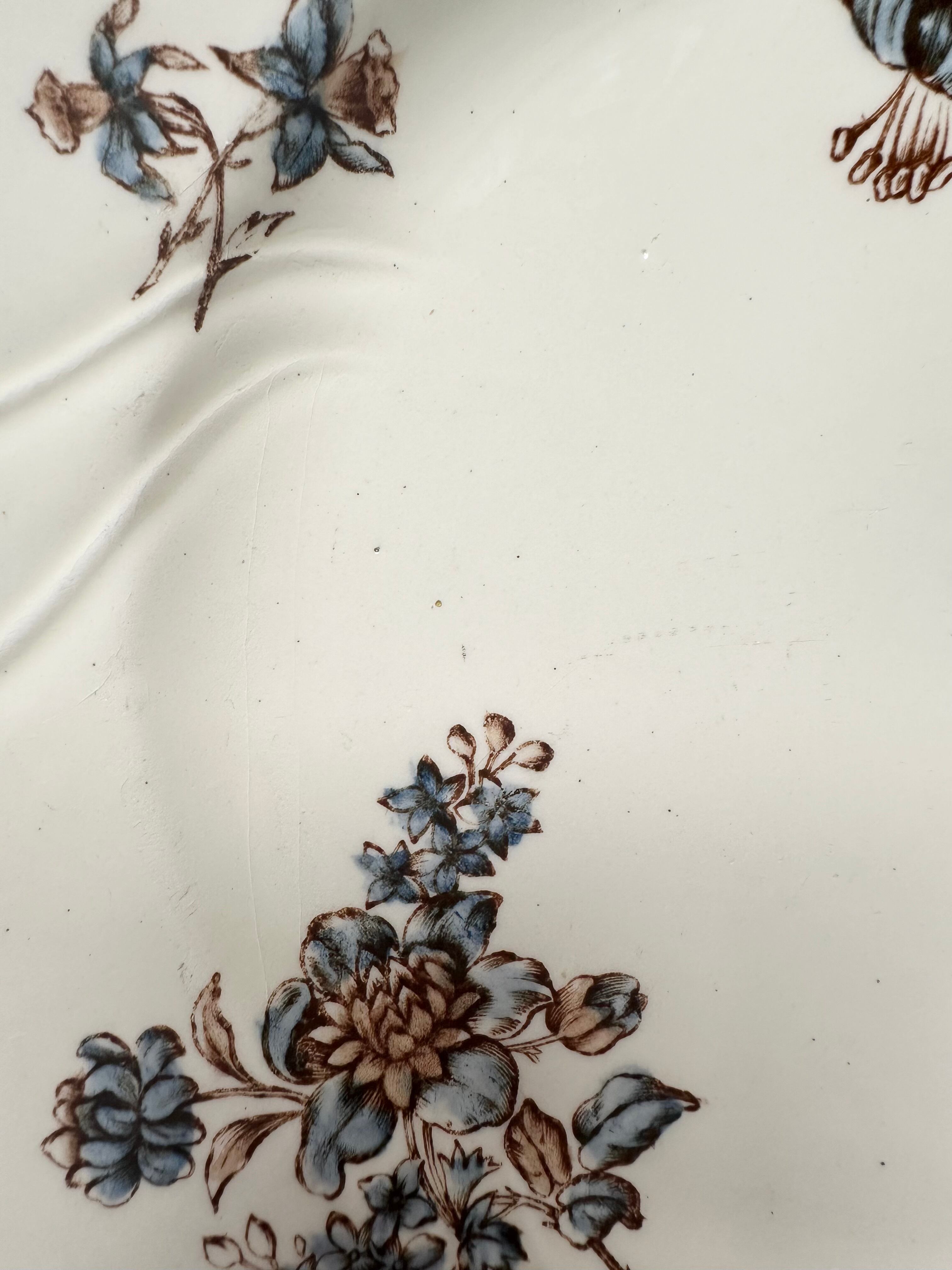 流れるような加工がされた美しいお皿には、上品なブーケが描かれています。