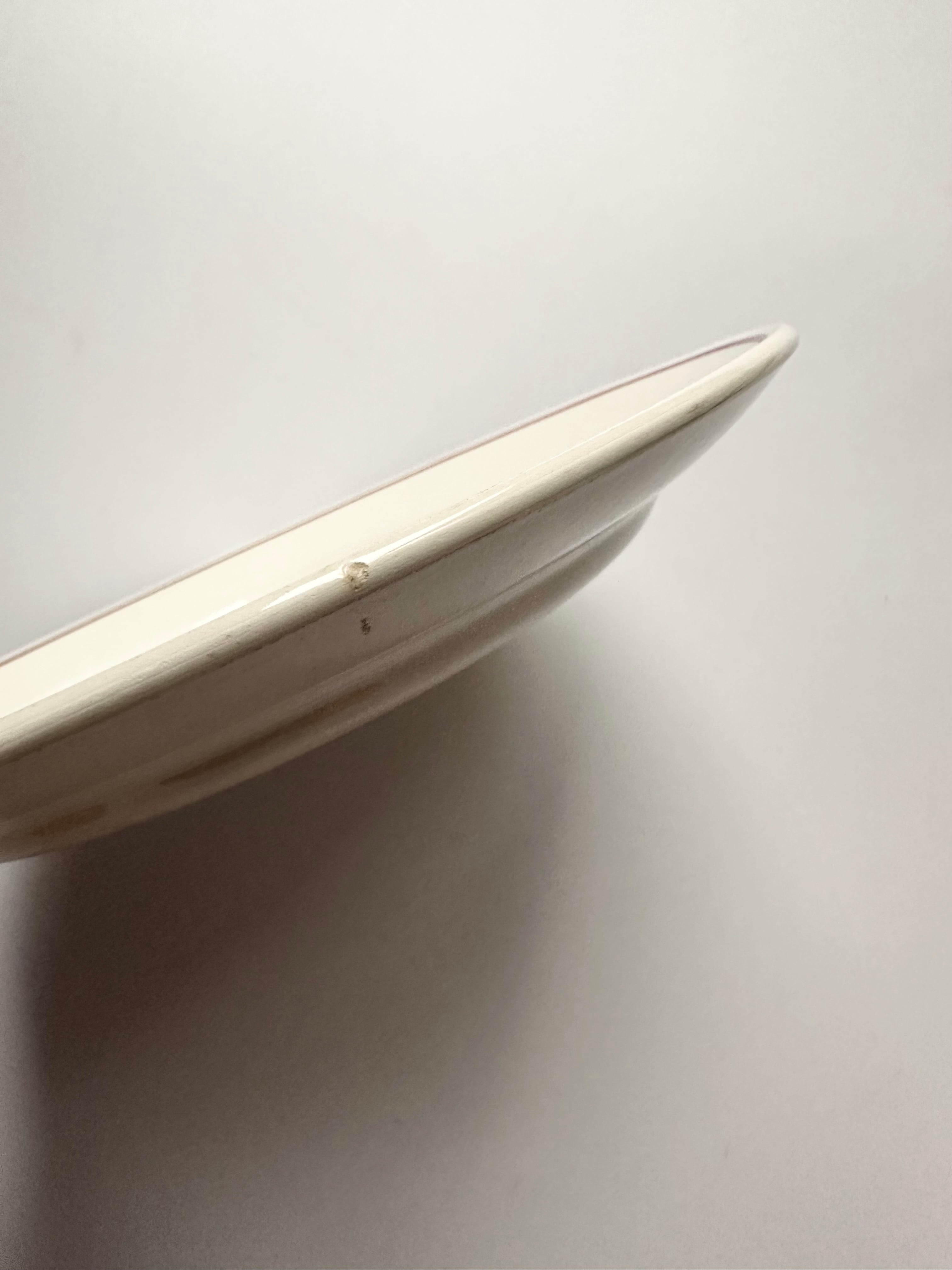 シンプルな丸いお皿を縁取るのはボルドーライン。