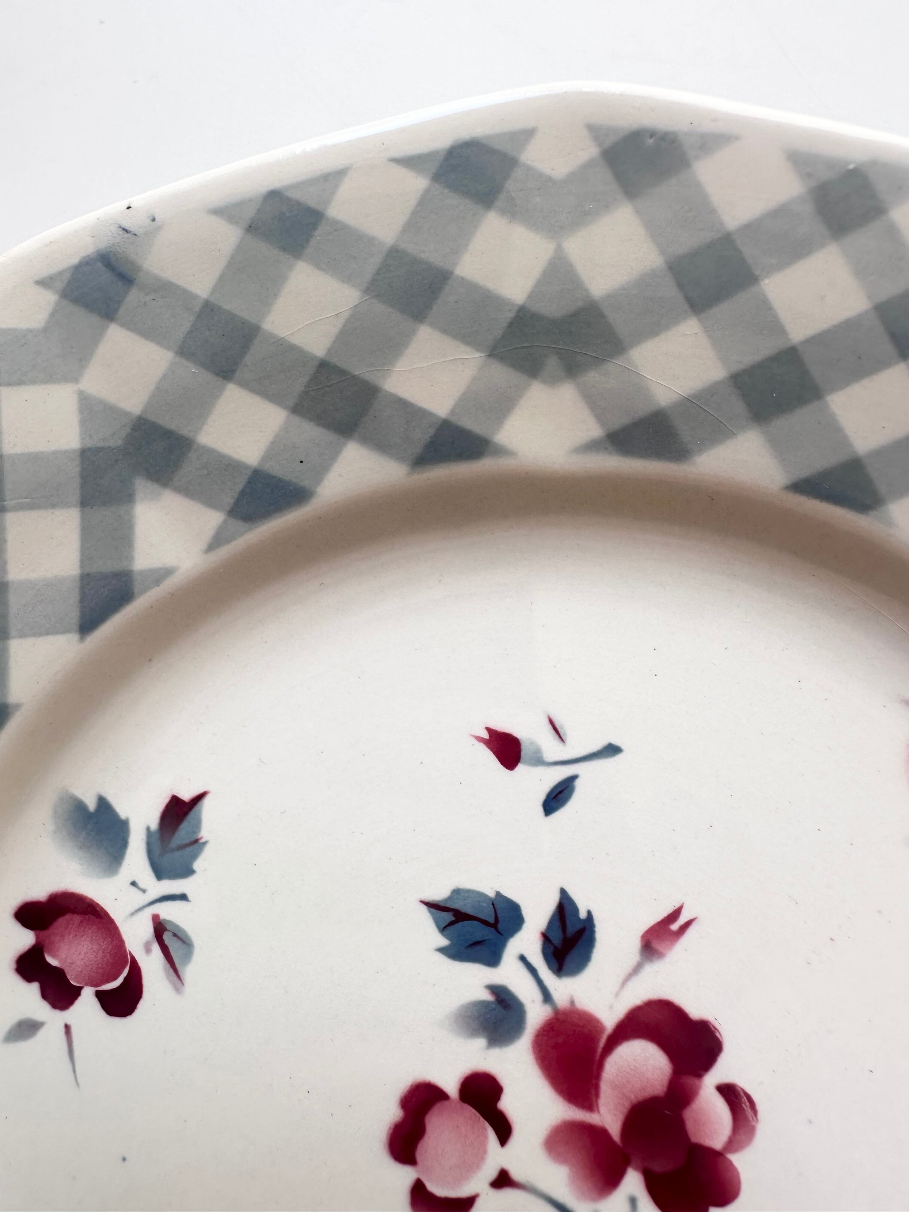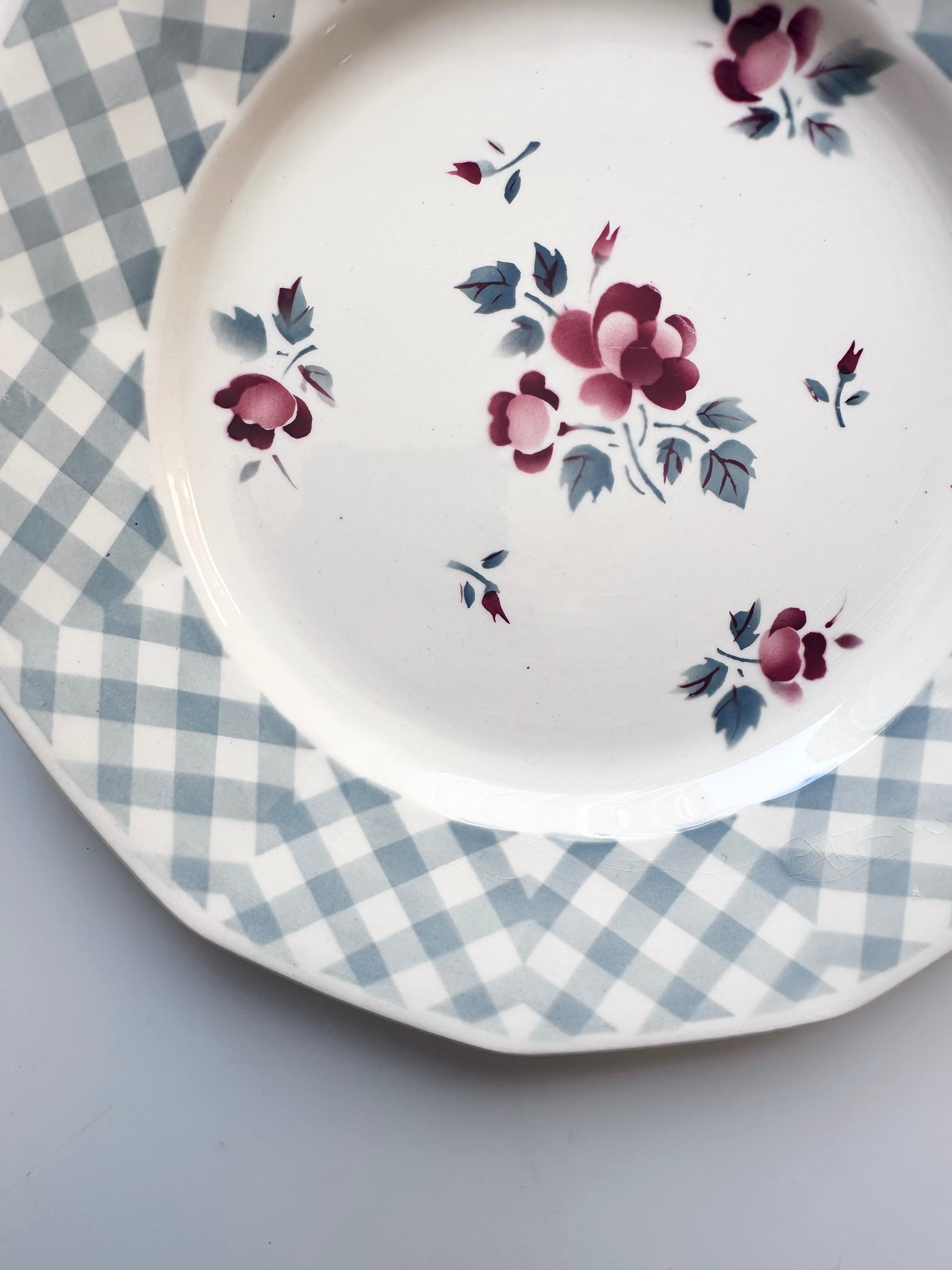 digoin sarreguemines BASTIA 小さなバラとチェックのお皿 平皿