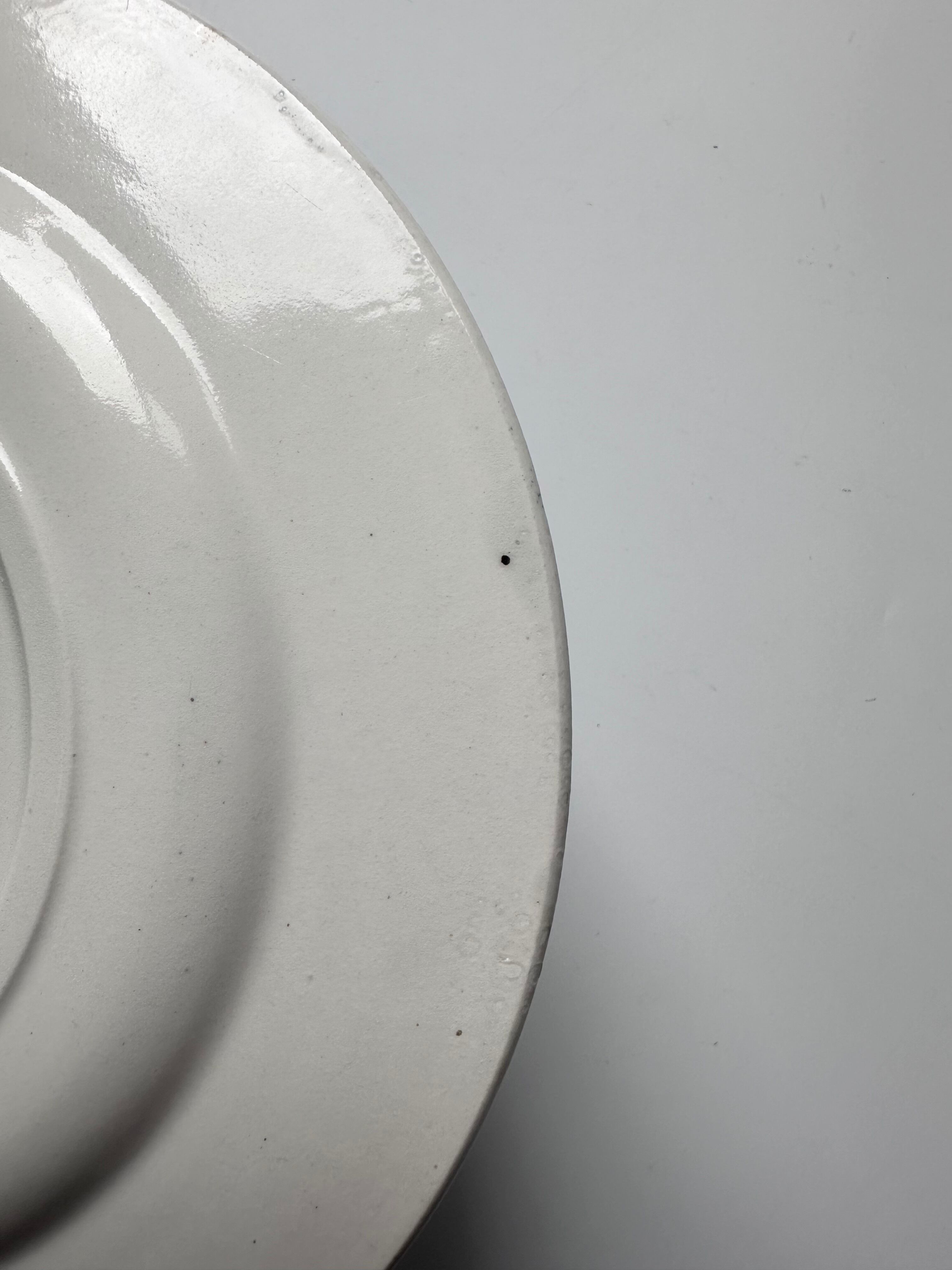 貫入は見当たりません。カトラリー傷、窯傷、スレ、小さな傷、裏に制作中の支柱跡、シミ、色ムラ、色飛びございます。