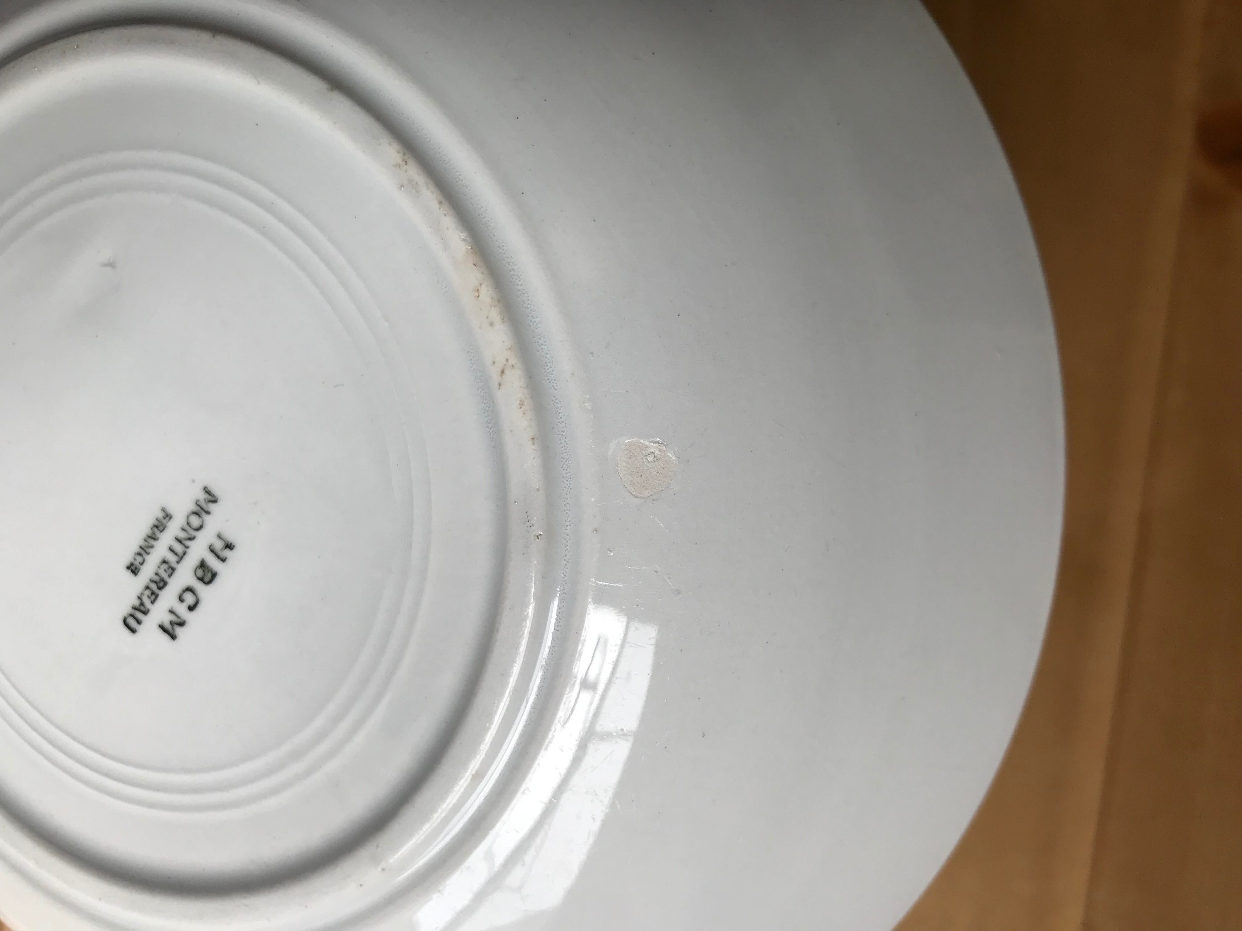 クレイユモントローのリムのない珍しいプレートのご紹介です。