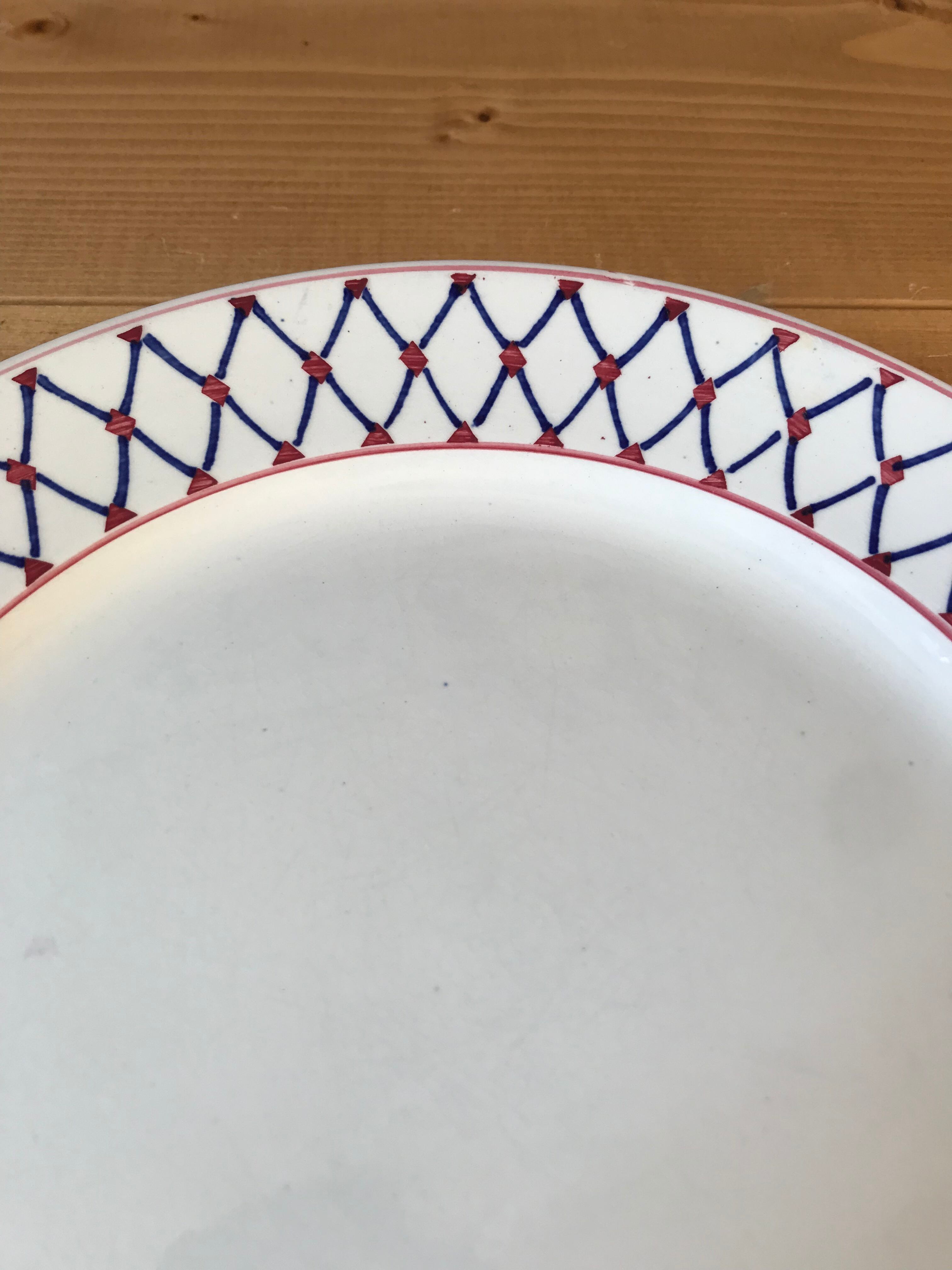 編み目模様のブルーと赤、お皿の白でトリコロールカラーになっているフランスらしいプレート。