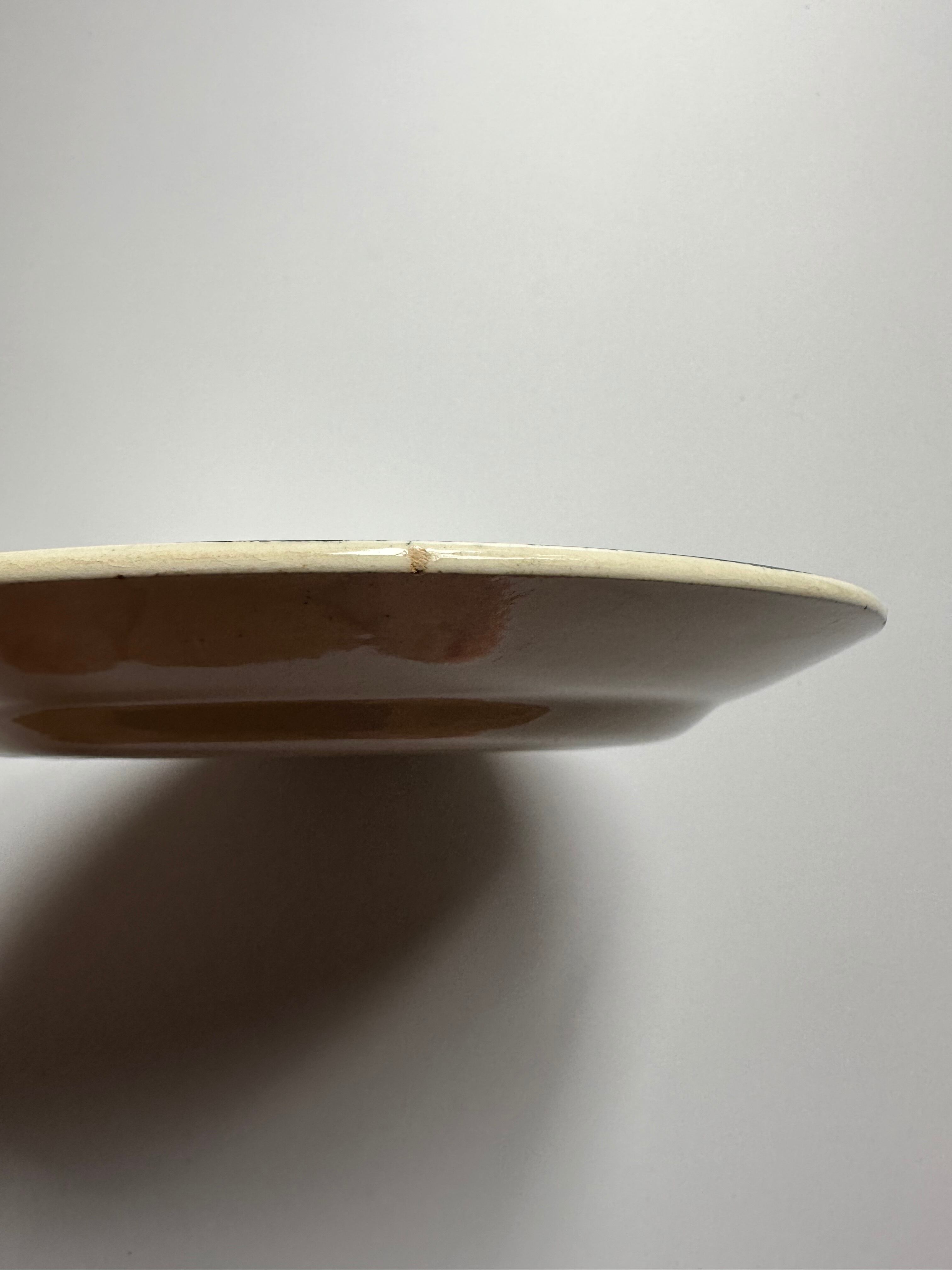 貫入、カトラリー傷、窯傷、スレ、小さな傷、裏に制作中の支柱跡、シミ、色ムラ、色飛びございます。