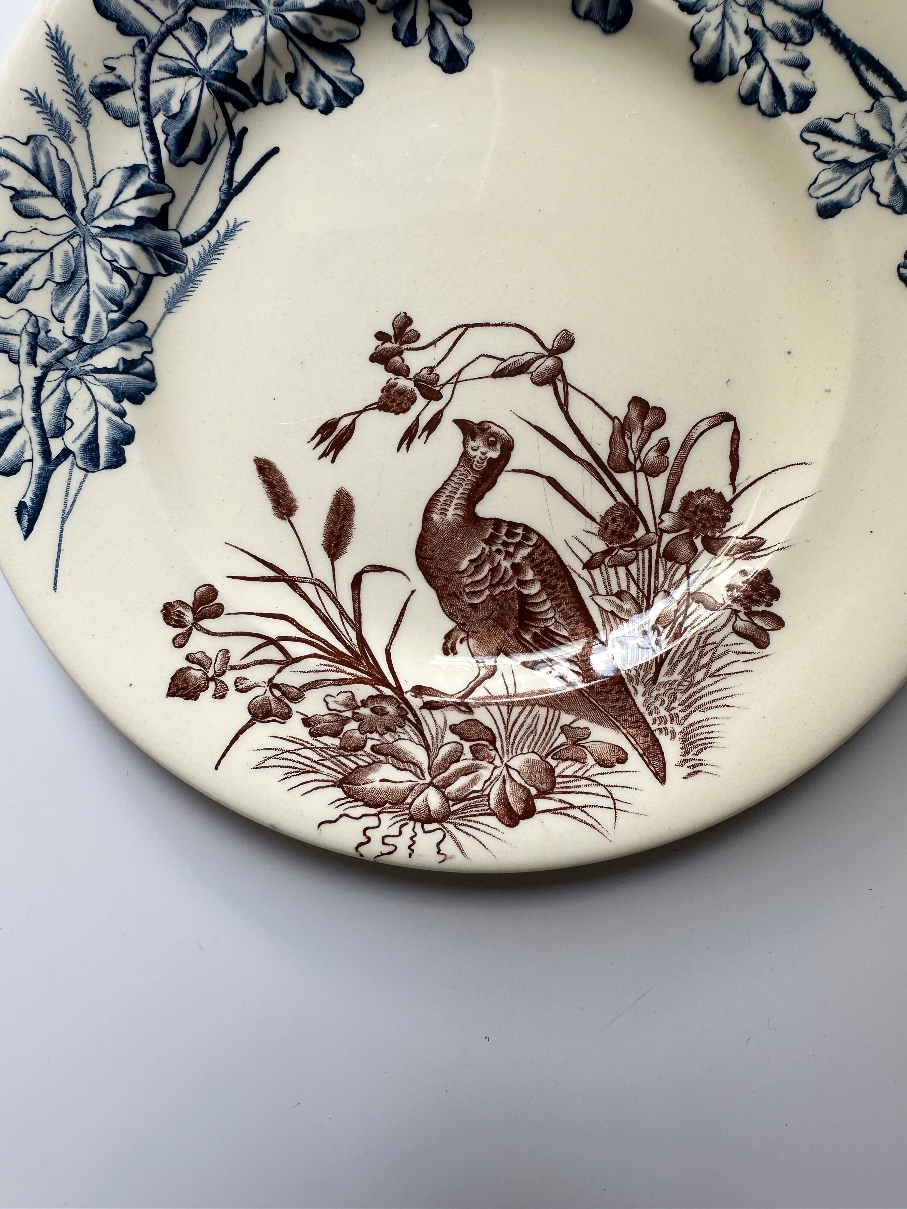 J.S&Cie terre de fer クレールフォンテーヌ 狩りをする雉 フランス アンティーク プレート 皿