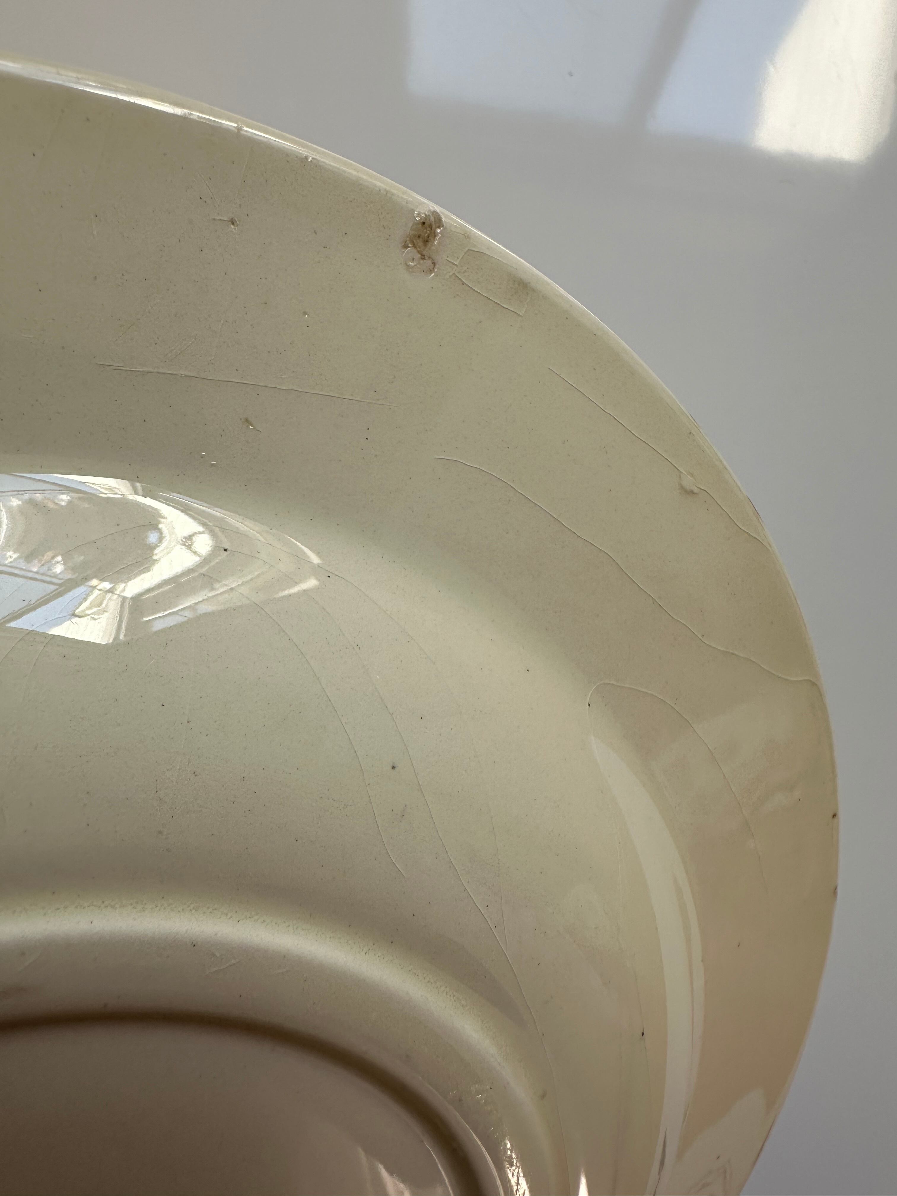 裏側に凹み、貫入、カトラリー傷、窯傷、スレ、小さな傷、裏に制作中の支柱跡、シミ、色ムラ、色飛びございます。