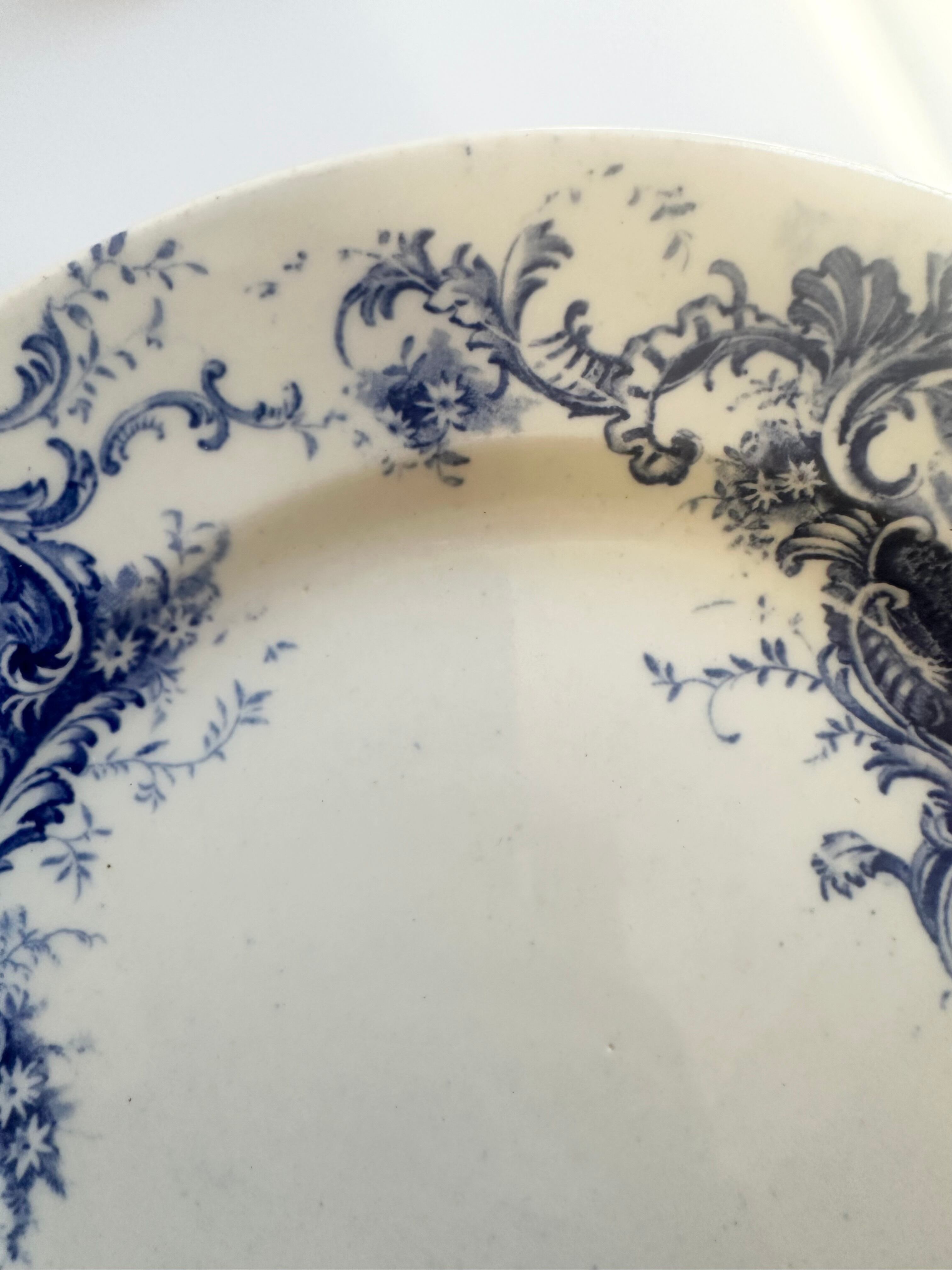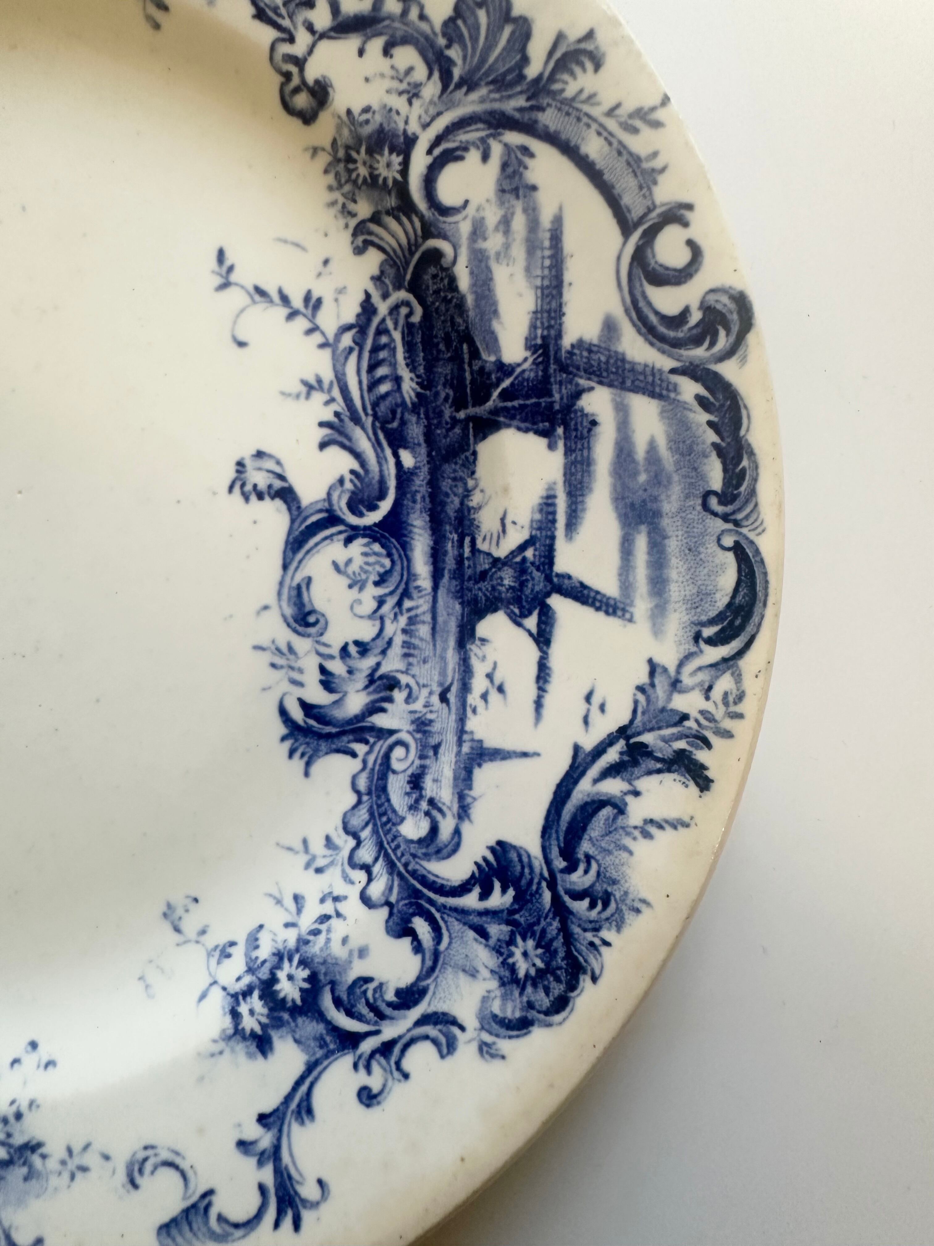 リム部分にキリっとしたブルーでフランスの田舎の風景(ヨットや風車)が描かれています。
