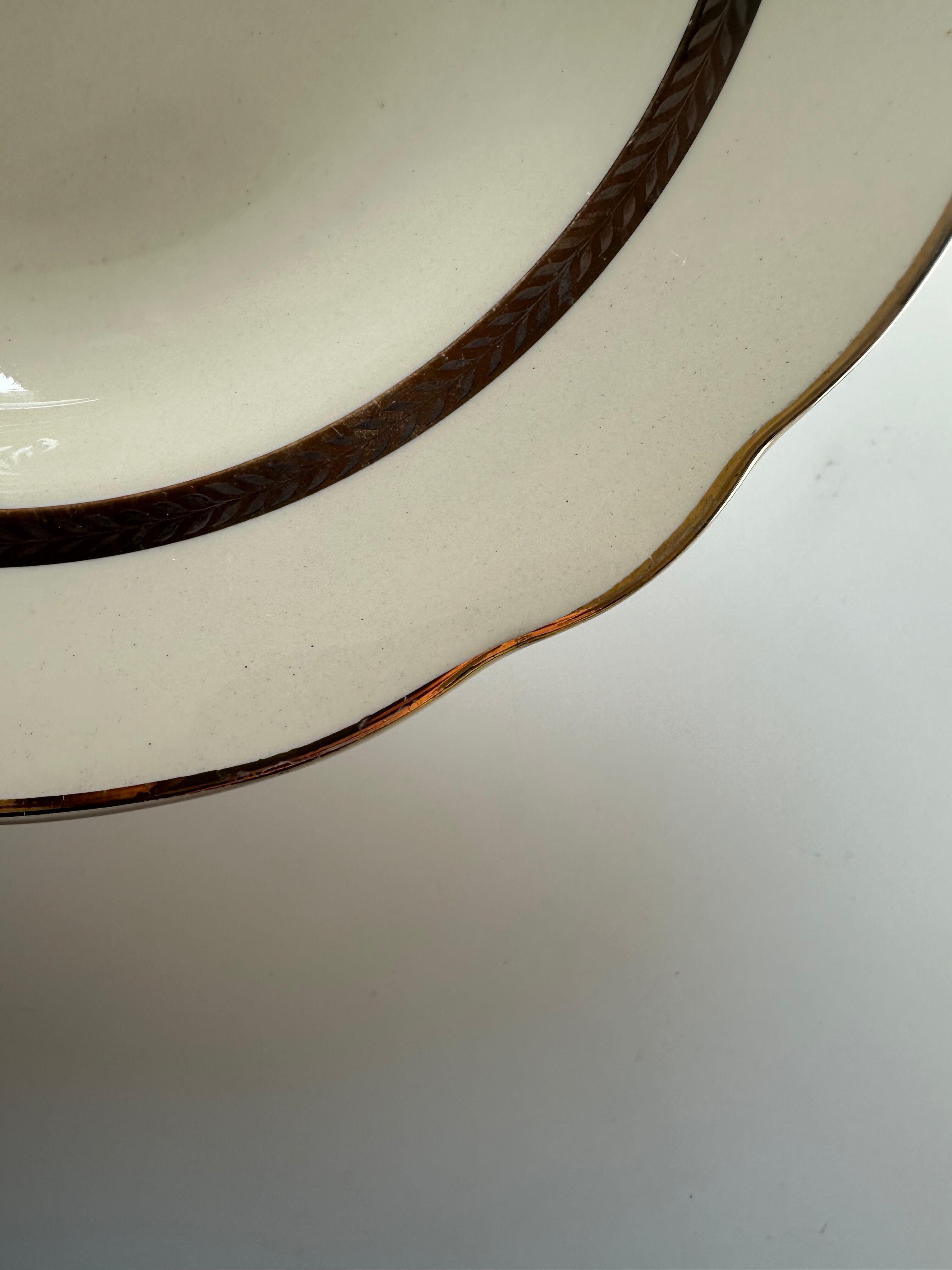 ローリエのような小さな葉が、ゴールドのリボンにあしらわれた華やかな深皿です。