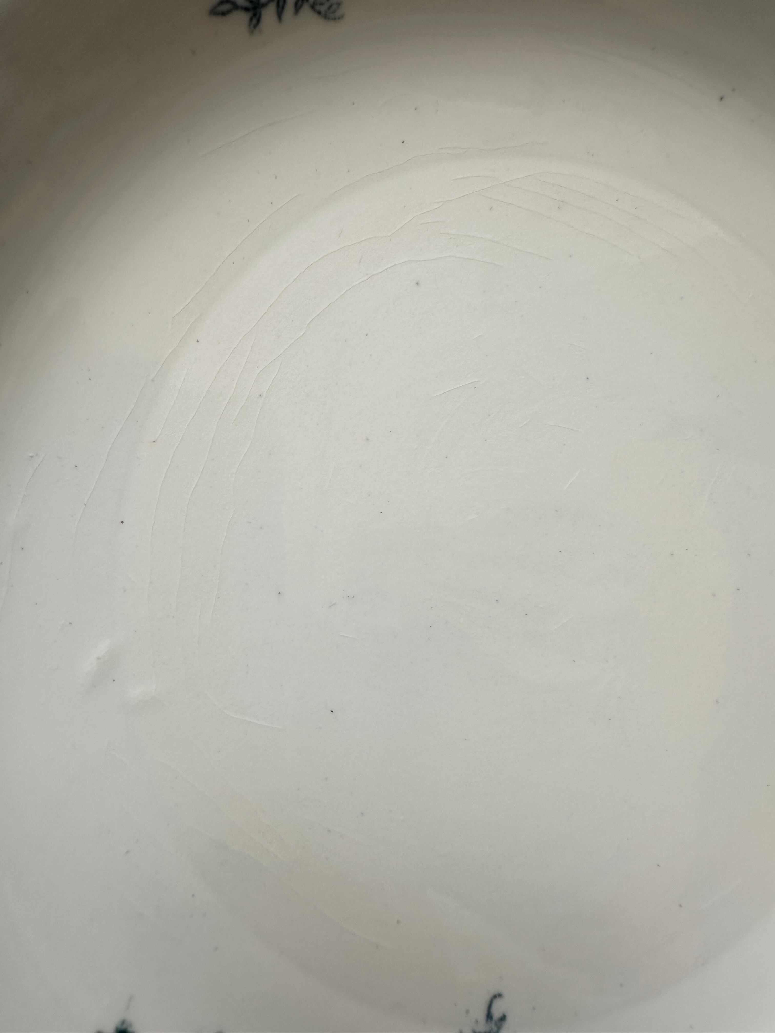 一部に貫入、多少のカトラリー傷、多少のスレ、土の付着物、裏に制作中の支柱跡、色ムラ、色飛びございます。